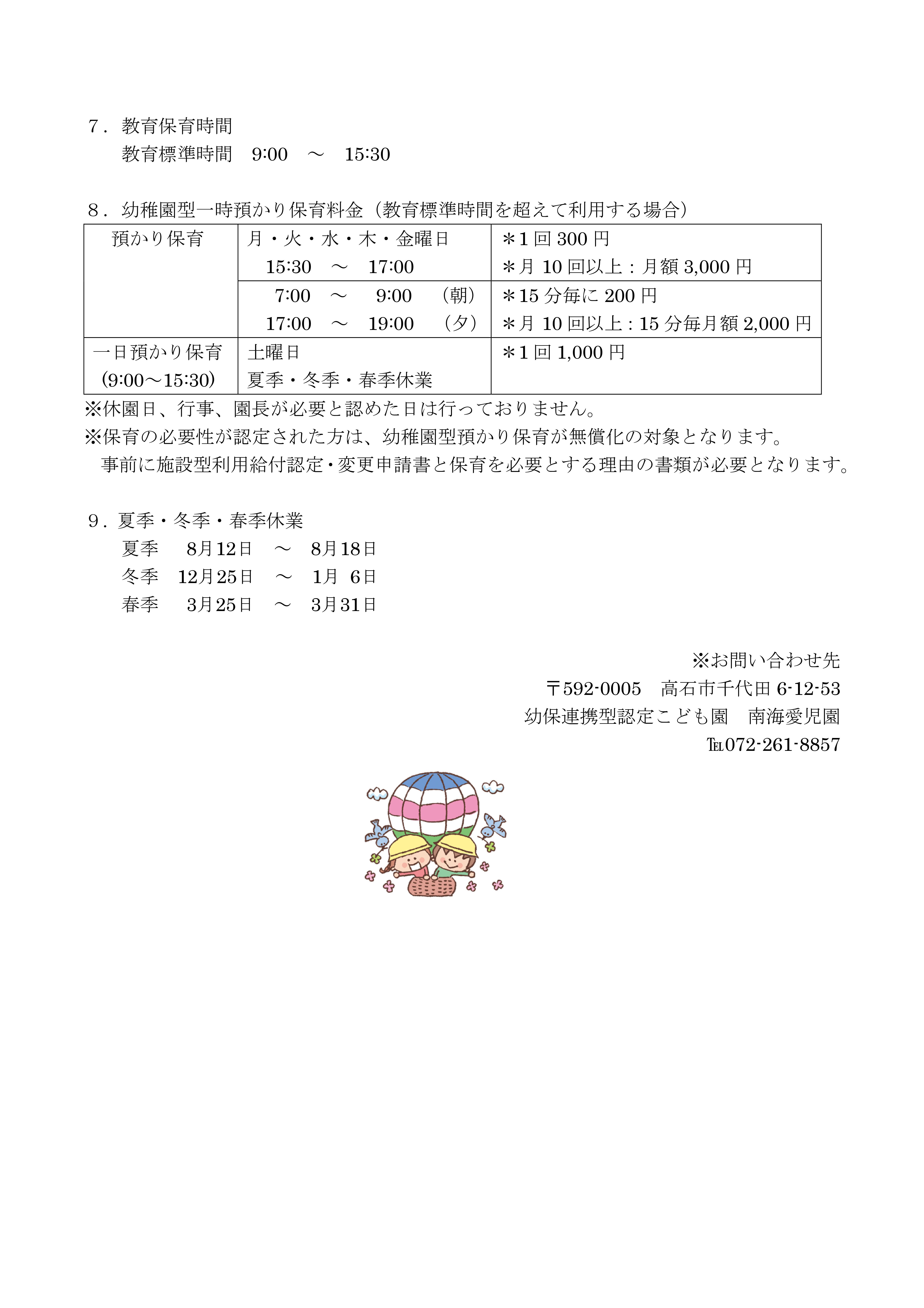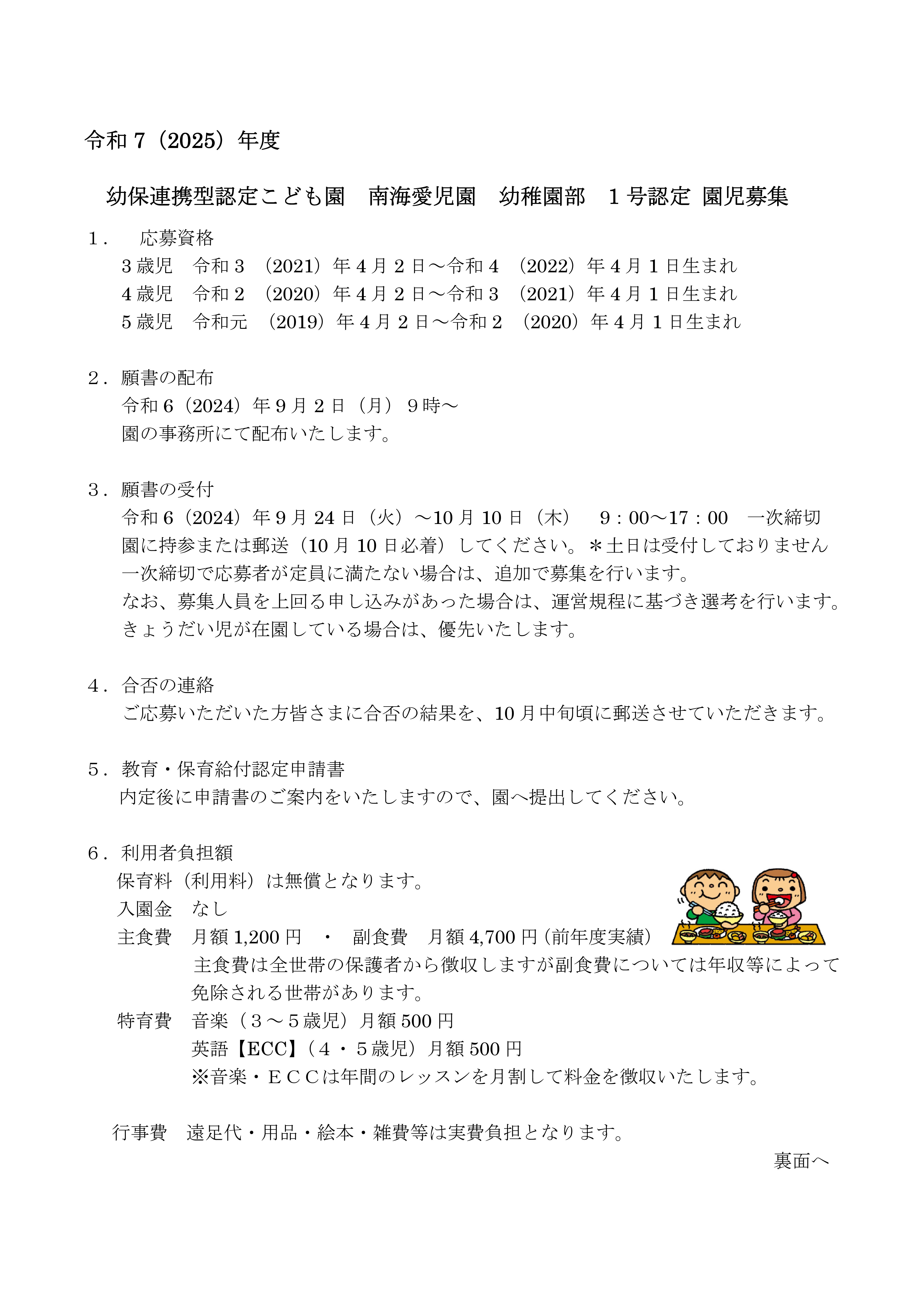令和7年度(2025年度)1号認定幼稚園部の入園募集 令和6年9月2日~配布いたします。