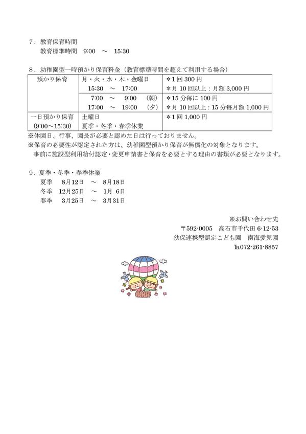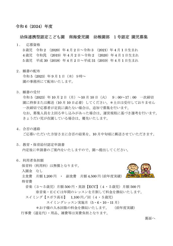 令和6年度(2024年度) 1号認定(幼稚園部)入園案内のお知らせ