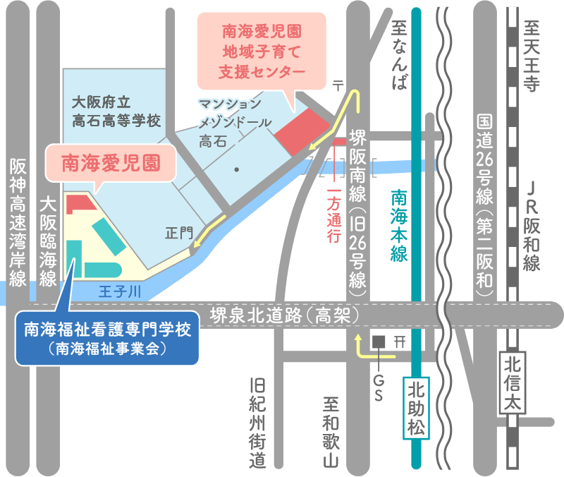 - ➊南海本線「北助松」駅下車、徒歩約8分